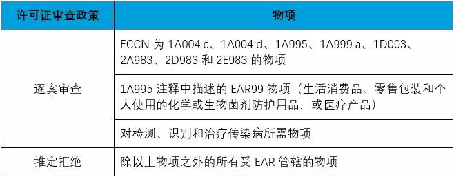2. 對于其他中國大陸實(shí)體和個人,出口、再出口、轉(zhuǎn)讓(境內(nèi))受EAR 管轄的全部物項(xiàng)均采取“推定拒絕”的審查政策。