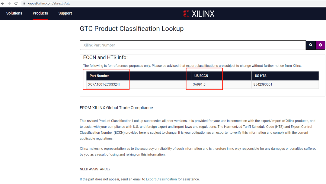 2. 賽靈思(Xilinx)官網(wǎng),ECCN查詢頁。